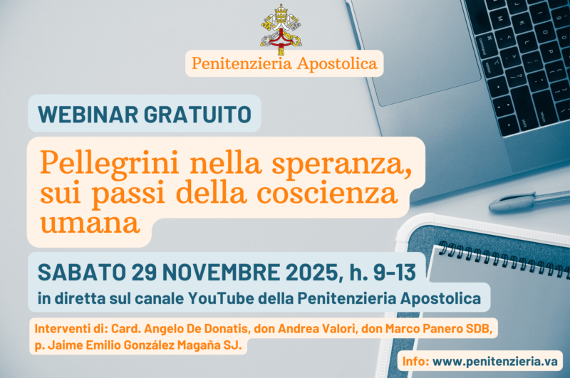 La Penitenzieria Apostolica è lieta di annunciare la realizzazione di un webinar dal titolo “Pellegrini nella speranza, sui passi della coscienza umana”, un’iniziativa formativa dedicata all’esplorazione della coscienza umana e della consapevolezza di sé alla luce del Rivelazione.